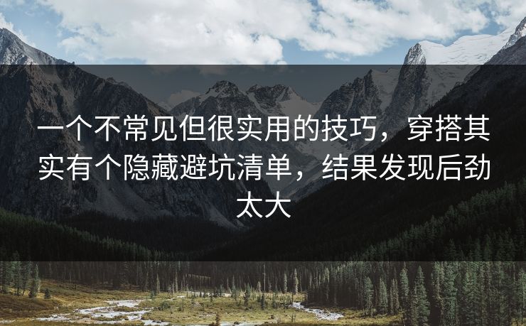 一个不常见但很实用的技巧,穿搭其实有个隐藏避坑清单,结果发现后劲太大