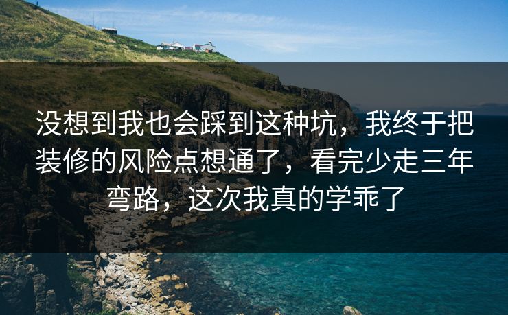 没想到我也会踩到这种坑,我终于把装修的风险点想通了,看完少走三年弯路,这次我真的学乖了