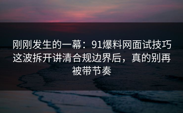 刚刚发生的一幕:91爆料网面试技巧这波拆开讲清合规边界后,真的别再被带节奏