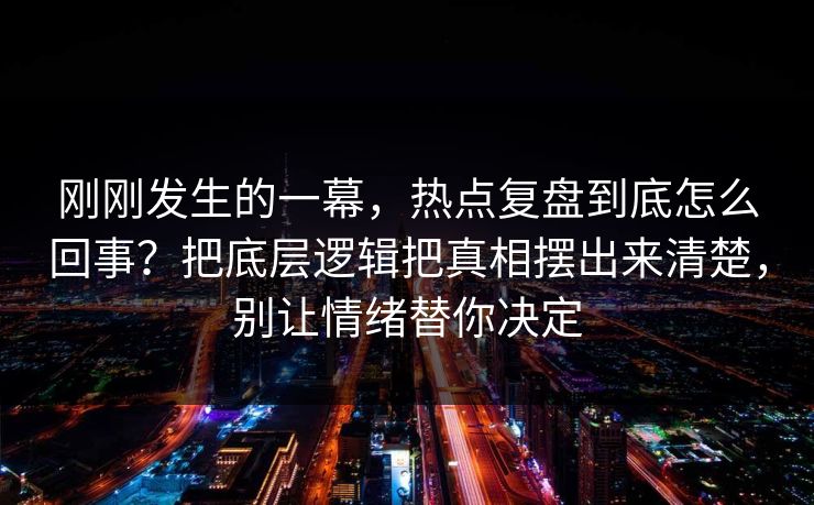 刚刚发生的一幕,热点复盘到底怎么回事?把底层逻辑把真相摆出来清楚,别让情绪替你决定